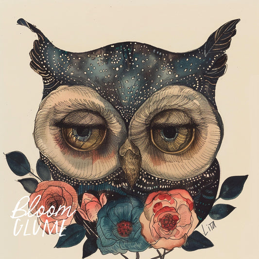 Bogart Owl Print, Lowbrow art, Cottagecore, illustration, botanical art, Owl Art Print, Owl Storybook art, Cute Owl Decor, Owl illustration
