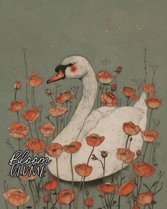 Midsummers Reverie Swan Print, Secret Garden Series Print, Whimsical art, Botanical Art, wildlife art, swan art, fairytale art, Audubon Art