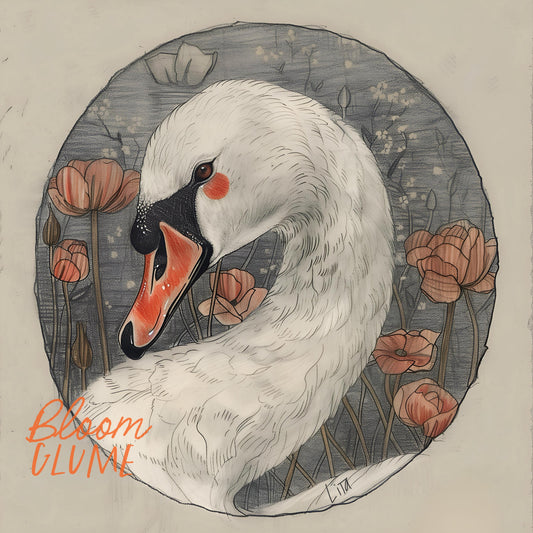 Swan Sketch Print, Secret Garden Series Print, Whimsical art, Botanical Art, wildlife art, swan art, fairytale art, Audubon Art