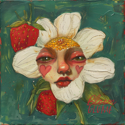Fragaria Print, Strawberry Decor, Strawberry art, Flower art, Flower Face, Fairytale art, Doll flower, Lowbrow art, Cottagecore